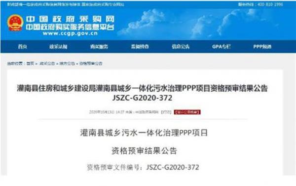 10月13日,灌南縣城鄉一體化污水治理PPP項目發布資格預審結果公告,11方通過資格預審,中交+碧水源、長江環保集團、葛洲壩等都來了。項目總投資292168萬元。